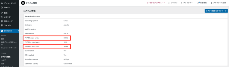 これだけ違います。正直300MなんてElementorを入れてしまえばすぐです。